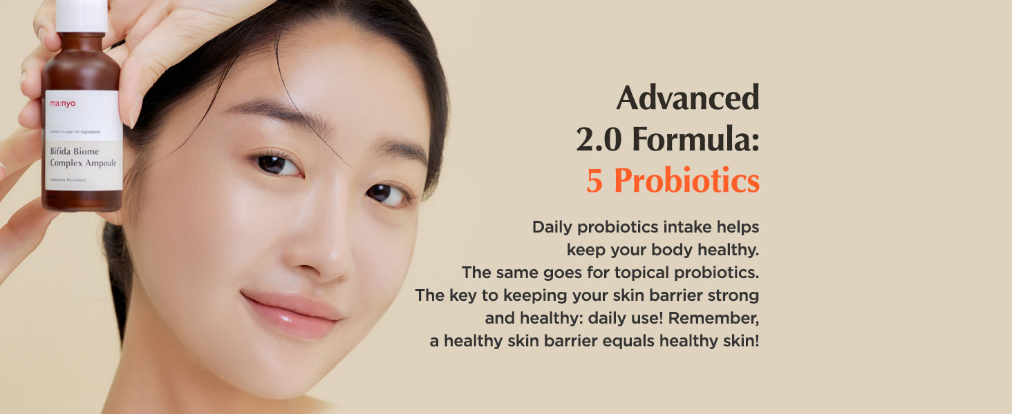 - 5 types of probiotics, just for your skin surface : A combination of bifida biome and probiotics complex offers you an even greater effect of skin surface enhancement.