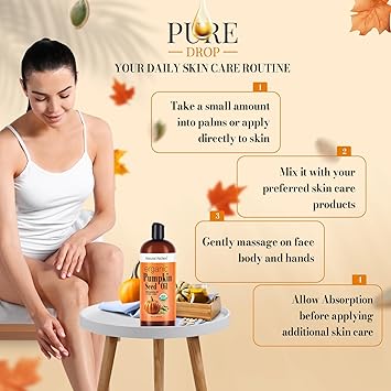- BOOST Hair Shine and get Great Hair Growth: Pumpkin Seed Oil contains Omega-3s, essential fatty acids, zinc, vitamin E, Vitamin K, and phytosterol — which is great for collagen production. Pumpkin Seed Oil is a great hair moisturizer. It Nourishes hair follicles and promotes hair thickening and hair count.