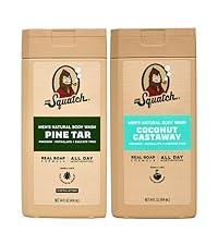 Dr. Squatch NEW Body Wash for Men with Nourishing, Natural Ingredients | No Paraben, Phthalate, Sulfate Wood Barrel Bourbon (14 oz), Coconut Castaway & Pine Tar (8 oz, 2-Pack) Scrubber