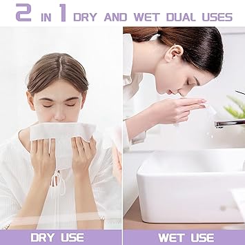 - 【MULTI-PURPOSE】 All in one towel, tissue and wipes set, the face towelettes disposable can be used for Dry your face & body, Makeup removing, Remove face masks, Clean your makeup tools, Office cleaning, Outdoor use and can be repeated use