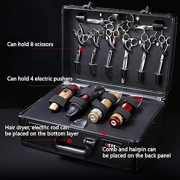 - 【Large Capacity】The Product is large capacity, it can hold 4pieces different size electric clippers, can hold 8pieces different size scissors.Inside can put fan, electric rod, comb, cloth and other items, can put 5pieces combs of different sizes