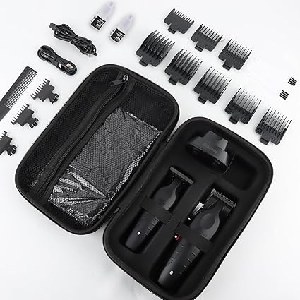 - Men's Haircut Grooming Set: This is a hairdresser set for haircuts, including 11 limit combs(1/2/3mm)(3/6/9/13/16/19/22/25mm), cleaning brush, instructions, cape, charger with USB connection and ABS plastic protective accessories for different hair lengths