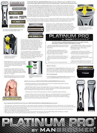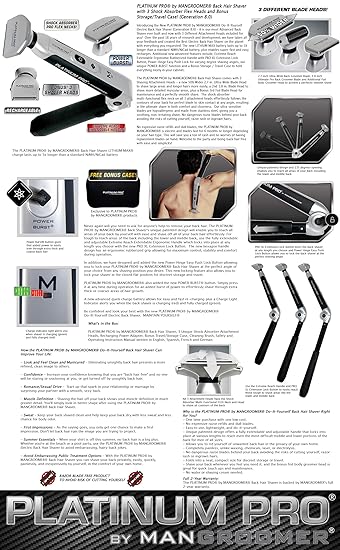 For use exclusively with the PLATINUM PRO by MANGROOMER Back Shaver and the PLATINUM PRO by MANGROOMER Body Groomer and body Trimmer.