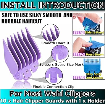 - 【Easy Installation and Secure Fit】: These 10 guard clipper guards are designed for a secure fit, ensuring they stay in place during use. Installation is quick and simple, allowing you to switch between cutting lengths without any hassle. Whether you’re a seasoned professional or a home user, the ease of use and secure fit make these clipper guard holder a practical and reliable addition to your grooming tools.