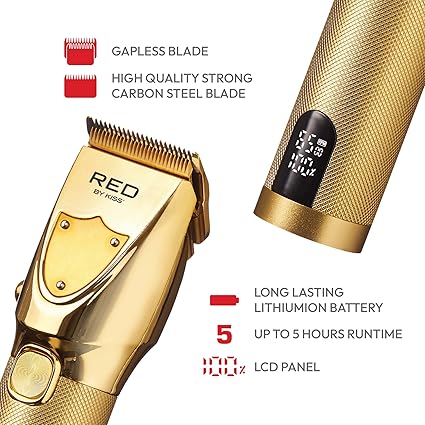 RED by Kiss Cordless Hair Clippers, Trimmer for Professional Haircut, Grooming Kit Men Ultra Clean-Cut Clipper