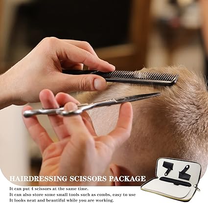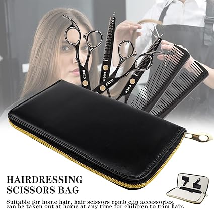 Salon Scissors Storage Bag, Black Leather Zipper Scissors Bag - Salon Tools Holster Bag for Stylist Barber Hairdressers