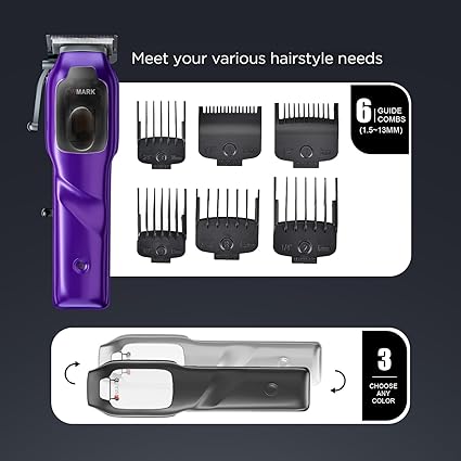 - 【What's Included】- The cordless barber clippers It comes with 6 good quality guide comb, 1 cleaning brush and a comb, 2 hair stickers,1charging cable and cordless charging device