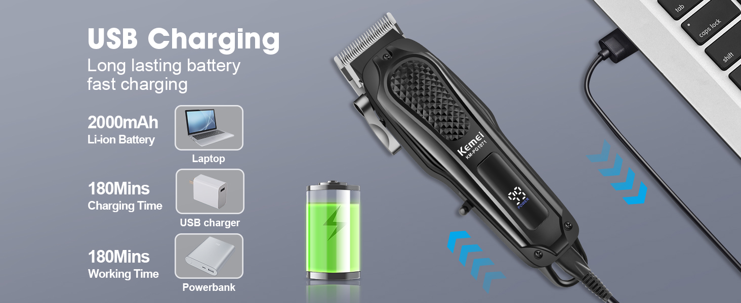 - 【LCD Display】The clipper in this KEMEI hair cutting have digital LED displays that provide real-time feedback on battery percentages ranging from 0 to 100. It also includes intelligent reminders for charging, refueling, and cleaning, making it convenient for users to access various status displays.