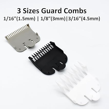 - Package comes with 3 pieces 3 lengths in 3 colors nylon attachment guide combs, 1/8", 1/16", 3/16"