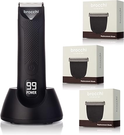 Brocchi Cutting Edge USB Waterproof Face & Body Hair Trimmer - Electric Razor for Men Beard Nose Clippers Charger (3x Blades)