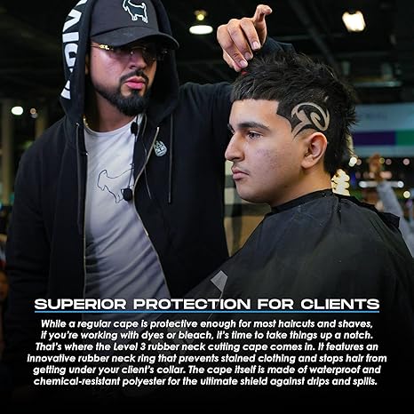 Level 3 Cape with Rubber Neck - Water Resistant Barber Hair Cutting Professional Salon Stylist and Accessories