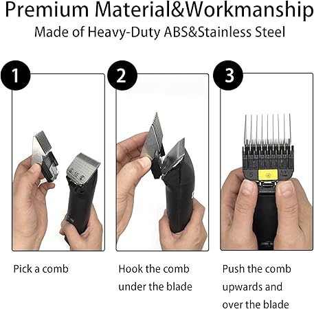 - These well-made guard combs are made of premium ABS and metal, both the teeth and the point of attachment to clipper are made of metal with spring loaded, sturdy, stable through thick hair, flexible in pet grooming