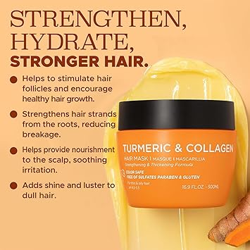 - STRENGTHENING -- Our turmeric & collagen hair mask is beneficial to stimulate hair follicles and strengthen hair strands, it also helps to boost volume, make your hair look fuller.