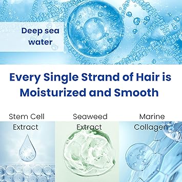 - 【Deep Hydration with Marine Collagen & Seaweed 】Infused with deep sea water, marine collagen, and seaweed extract, it locks in moisture, improving hair elasticity while restoring shine and smoothness.