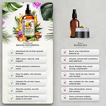 - UPGRADED NEXT-GEN BATANA: While basic Batana Oils only coat the hair, our powerful blend deeply penetrates the scalp, repairing damaged strands, strengthening hair follicles, and stimulating faster, fuller growth. Say goodbye to dryness, split ends, and breakage - hello to stronger, shinier, healthier hair!