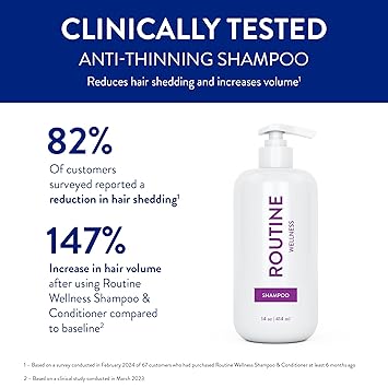 - ROUTINE WELLNESS SHAMPOO: Infused with hair strengthening ingredients for women and men, Routine Wellness Shampoo reduces thinning caused by breakage, ensuring your hair feels stronger and fuller with our best shampoo for thinning hair.