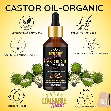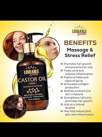 Discover the magic of pure Organic Castor Oil - your go-to remedy for gorgeous hair, glowing skin, and strong nails. Our bottle is packed with natural goodness, and cold-pressed to keep all its vitamins intact. Cold pressed castor oil organic dives deep to repair and nourish, making it strong, and shiny. Say goodbye to split ends. It's not just for your hair! Get those eyebrows and lashes looking fuller and healthier too. Struggling with acne or irritated skin? It soothes redness and fights those pimples, leaving your skin clear and smooth. Plus, it's great for fading scars and reducing wrinkles, so you can look as youthful as ever. Give yourself a relaxing massage with Castor Oil to ease away stress, it might even help with joint pain and digestion. Say hello to your new beauty bestie - Organic Castor Oil. It's simple, it's natural, and it's here to make you look and feel amazing from head to toe. Try it out and see the difference for yourself!