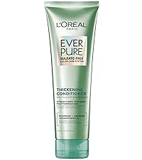 L’Oreal Paris EverPure Thickening Sulfate Free Shampoo and Conditioner hydrates and fortifies fine hair for thicker looking hair after the 1st wash. The system injects strength, reinforcing hair to be 15X stronger*. Strengthening Rosemary leaf leaves thin hair looking full and healthy. Our formulas are especially gentle on color treated hair. There are no harsh sulfates, salts or surfactants that can strip, dull and damage hair. Experience a purely sensorial lush, luxurious lather and a fresh aromatic fragrance that conditions. For best use, apply EverPure Thickening shampoo to wet hair and massage gently into a thick lather. Rinse thoroughly. Follow with EverPure Thickening conditioner. *System of shampoo, conditioner, and treatment vs. non-conditioning shampoo.