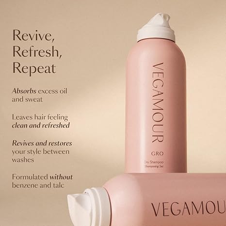 VEGAMOUR GRO Dry Shampoo, Volumizing Shampoo Spray Formulated Without Benzene, Supports Thicker Fuller Looking Hair, Natural Citrus Scent