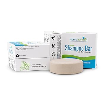 DermaHarmony 2% Pyrithione Zinc Shampoo Bar for dandruff and seborrheic dermatitis - Peppermint (4 Oz) Solid shampoos are great because they last a very long time, are less-expensive per wash, and produce less waste since they don’t come in plastic bottles. Our new soap-free 2% Pyrithione Zinc Shampoo Bar is derived from plant-based surfactants with no animal ingredients. The bars are 100% SLS free. They're scented with natural peppermint. The DermaHarmony Shampoo Bar is very mild to the skin and non-drying. The bar is sulfate-free with a pH of 5.1 and has a dense luxurious lather in both hard and soft water. A single bar will last for months with daily use.