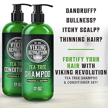 Viking Revolution Tea Tree Shampoo and Conditioner Set - Hydrates, Moisturizes & Soothes Dry Itchy Scalps With Natural Oil 17 oz