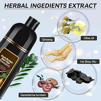 - 3-in-1 Hair Dye Shampoo : Our hair dye shampoo is enriched with herbal extracts and a unique formula to color your hair while nourishing and moisturizing the scalp. Say goodbye to dry, brittle hair and enjoy improved manageability.