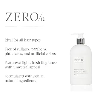 Ideal for all hair types, this gentle conditioner will leave your hair fresh, hydrated, and renewed. This Zero% product contains vitamin B5, an excellent moisturizer and creates a moisture locking barrier that seals hydration into hair. 15.5oz