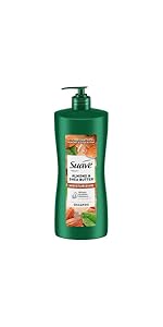 Suave Professionals Almond & Shea Butter Moisturizing shampoo and conditioner are infused with 100% natural almond and shea butter, which are known for their rich emollients. Our rich moisturizing shampoo formula works as a dry hair shampoo targeted to replenish hair and leave it feeling well-nourished and beautiful. When used together as a system, this nourishing shampoo and conditioner are salon-proven to moisturize as well as Aveda Dry Remedy. Simply lather and rinse with Suave Professionals Almond + Shea Butter Shampoo for dry hair. Follow by fully coating each hair strand with Suave Professionals Almond + Shea Butter Conditioner. For best results, use with Suave Professionals Almond + Shea Butter Moisture Mask to achieve the ultimate in deep moisture to re-hydrate hair and leave it touchably soft. Suave Professionals is salon-proven to work as well as salon brands, helping you achieve a variety of beautiful hairstyles while caring for your hair. This hair shampoo line is developed to help you achieve naturally gorgeous, healthy-looking locks. For over 75 years Suave has offered professional quality products for the entire family, which are proven to work as well as salon brands. The Suave promise is to make gold standard quality attainable to all, so everyone can look good, smell good, and feel good every day.