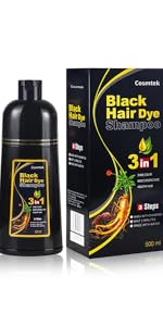 Black Dye Shampoo for Permanent Hair Color - Men&Women, Gray Coverage, Beard & Treated Hair, 3-In-1, 30 Days/500ml/Ammonia-Free/Natural Herbal